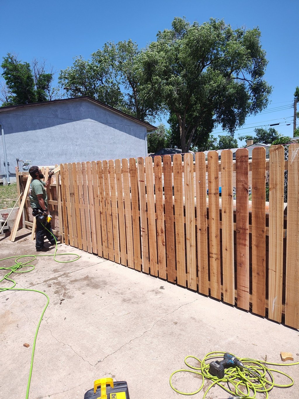 Fence was the 3rd thing Ken was hired for. His first job was building a new banister on my porch, from scratch. Exterior was getting complete makeover. I couldn't believe it when I saw the gorgeous banister, the attention to detail! I realized then that Ken is a perfectionist. I'm stunned at the craftsmanship! Fast forward to this year, and my entire west facing back fence had to be replaced. There is nothing to block the wind, so I needed it solid, sturdy, AND good-looking. He asked which style I preferred, and him and his team went to work. Again, meticulously done. He even did two gates into the backyard. He made them 10x better than I had before and even changed direction on one of them, making it MUCH more convenient. If you need a fence, you will get a hard worker who doesn't stand still. All I saw was him working and doing things with precision. He also had some long days. No matter which way you need a fence, this man and his team can build it, like you hired a master carpenter. Your fence will be the best one in your neighborhood. HIGHLY RECOMMEND.